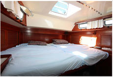 Generous master cabin with ensuite head. Forward cabin with ensuite head. Salon comfortably sleeps two more. Fully equipped galley. Plenty of storage in every corner of the boat. Most lights LED. Folding saloon table with built cutlery and bottle compartment. Very well ventilated especially when at anchor. Beautiful joinery.