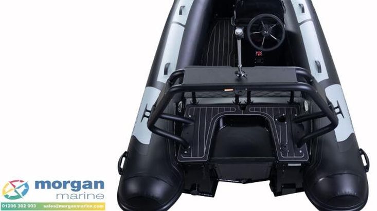 Deck: Black PVC tubes 47cm diameter. Self-draining deck. Welded seams. Flush mount non-return valves. High tensile chromated & powder coated aluminium hull. Integrated rear seat with cushion. Low profile console. Integrated transom supports. Lifting points and towing eyes. Tow bridle points. Brushed foam teak finished deck. Heavy duty rubbing stake and full length keel guard.