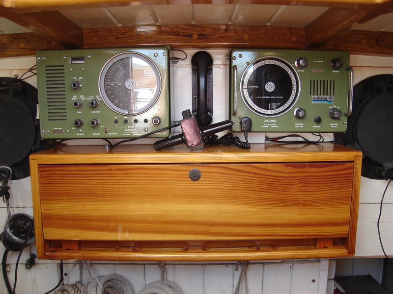 1 VHF with ATIS and DSC, 1 VHF Sailor (the Danish green box)
