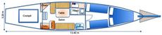 Overall Length: 42ft (on deck) :: Waterline: 32ft :: Beam: 10ft 6ins :: Draught: 7ft :: Displacement: 17 Tons TM